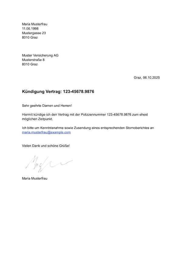 Muster für die Kündigung